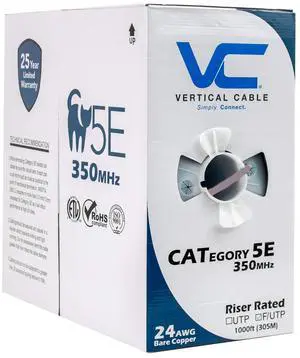 Vertical Cable Cat5e, 350 MHz, Shielded, 24AWG, Solid Bare Copper, 1000ft, Bulk Ethernet Cable, Gray
