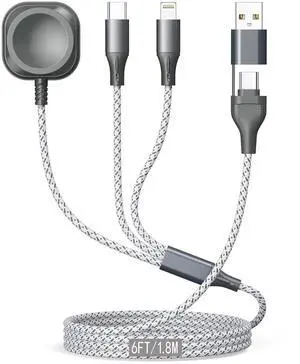 Multi Charging Cord 4ft 2Pack Multiple Charger Cable Apple MFi Certified iPhone Charger 3 in 1 Lightning Cable Durable Phone Charger Wire with Type C Micro Lightning Grey Black