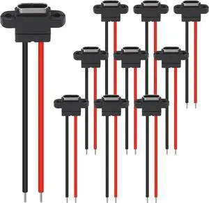 10PCS Female Socket USB-C Plug Type-C 2 Pin Connector USB Connector Type-C Female Chassis 2P Waterproof USB Female Socket Connector(Black)