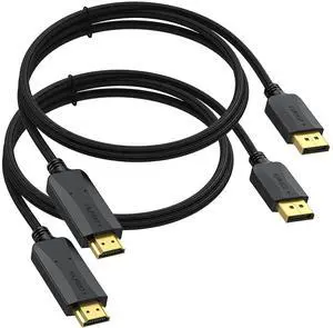 DisplayPort to HDMI Cable 6 feet 2-Pack, 4K Display Port DP to HDMI Display Adapter Male to Male Cord UHD 4K, 2K,1080P, Gold-Plated Braided Support Video and Audio for Dell, HP, NVIDIA,Samsung, More