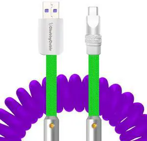 chubbycable Colorblock Chubby - Spring Braided Silicone Charge Cable Coiled USB C Cable Fast Charging Type C Charger Cord for Car, Purple+Light Green, USB-A to Type-C, 2.29FT-3.6FT