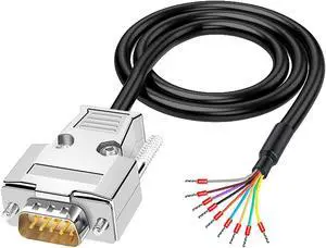 DB9 Solderless Breakout Connector with 5Ft 24AWG Replacement Cable, Metal Shell RS232 D-SUB Serial to 9-Pin Port Terminal Male Adapter Connector Breakout Board