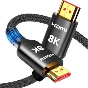 Highwings 8K HDMI to HDMI Cable 6FT, Male to Male HDMI Cable Nylon Braided Cord 8K@60HZ 4K@120HZ 48Gbps Compatible with Laptop Tablet Camera Monitor TV
