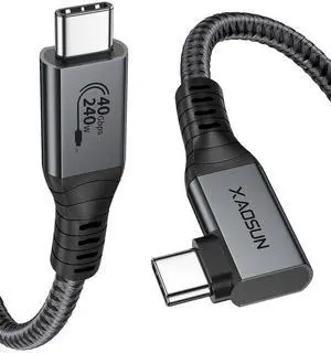 XAOSUN 240W USB4 for Thunderbolt 4 Cable 5.9ft, 90 Degree Right Angle Thunderbolt 4 Cable, Support 240W Charging, 40Gbps Transfer, 8K HD Display for iPhone 15 Pro Max MacBook Thunderbolt Dock Tablet