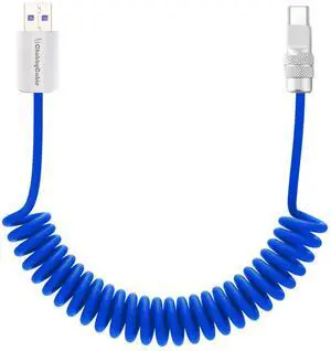 chubbycable Curly Chubby Retractable Fast Charging Cable 120W Coiled Charger Cord for Car Durable USB C Cable Compatible with iPhone 17-15 Series, Dark Blue, USB-A to Type-C, 1.3FT-2.3FT