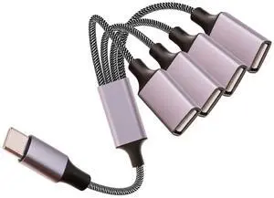 Fidioto USB-C OTG Splitter Y Cable(10 inch long),USB C Male to Four USB A Female Cable Adapter,Multi USB 2.0 Port Expander Hub,Multiport Split Adapter for iMac/iPhone 15/iPad Pro Air 4 5/PC(Grey)