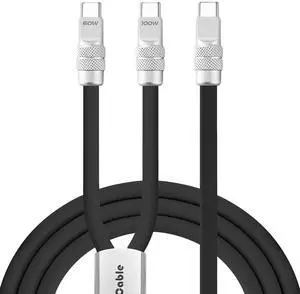 chubbycable Duo-Flex 100W & 60W 2-in-1 Fast Charging & Data Transfer Cable with Soft Silicone USB C Multi Charging Cable for iPhone 17 Series iPad Galaxy Series, Black