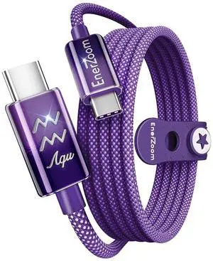 Aquarius Zodiac Charger Cable - Hand-Painted USB C to USB C Cable, 240W PD 3.1 Type C Fast Charging Nylon Braided Cable, Astrology Gift for Her, 3.3ft