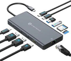 Laptop Docking Station 3 Monitor, 4K@120Hz Dual DisplayPort, 4K@60Hz HDMI, 12-in-1 USB C Hub, 10Gbps USBC 3.2, USB 3.0, PD100W, Ethernet SD/T, Triple Monitor Dock Multiport Adapter for Windows