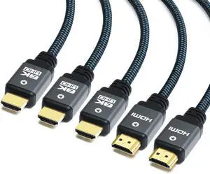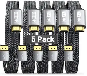 Yauhody 8K HDMI 2.1 Cable 6ft (5 Pack), 48Gbps High Speed HDMI Cable, Nylon Braided, Gold-Plated Connetors, Aluminium Shell, Supports 8K 60Hz,4K 120Hz/144Hz,10K,2K,HD,3D,Dynamic HDR,HDCP 2.2,4:4:4