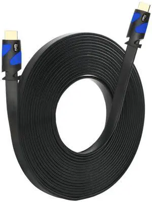 Postta Flat HDMI Cable(50 Feet) Flat HDMI 2.0 Cord Support 4K, Ultra HD, 3D, 2160p, 1080p, Ethernet and Audio Return-Black-Blue