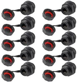 RJ45 Ethernet LAN Cable Connector CAT6 Shielded Industrial Panel Mount Bulkhead Feed Thru Coupler with Waterproof IP67 Dustproof Cap Outdoor Industrial Standard (10pcs)