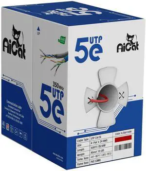 AiCat Cat5e Ethernet Cable 500ft - 24 AWG, CMR, Insulated Bare Copper Wire Internet Cable with FastReel - 350MHZ / Gigabit Speed UTP LAN Cable (Red)