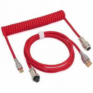 Braided Keyboard Cables 1.5m Coiled Type-C to USB A with Detachable Aviator Connector.for Gaming Keyboard/Tablet (red)