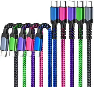 USB C to USB C Cable 60W, [6ft,5Pack] Braided Type C Fast Charging Cord Compatible with iPhone 17 16 15 Pro Max MacBook iPad Air5 Galaxy S25 Ultra S24 S23 A17 A16-Green,Purple,Pink,Blue,Black