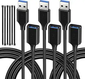 USB Extender Cord 10FT3 Pack, USB 3.0 Extension Cable, USB A Male to Female, Compatible for USB Flash Drive, Hard Drive, Card Reader, Webcam, Printer, Keyboard, Mouse, Playstation, Xbox, VR Headset