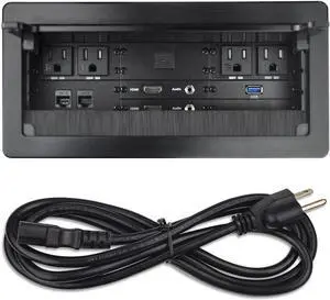 Tabletop Multimedia Connectivity Box with 4 AC Power+2 HDMI+2 RJ45+1 USB3.0 Port +1 USB-C +2 Audio with 5.58ft Power Cord for Conference Room(Black)