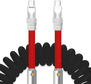 chubbycable Curly Colorblock Chubby 240W Coiled USB C Cable Braided Silicone Retractable Fast Charging Cable Compatible with iPhone 17-15 Series, Black+Red, Type-C to Type-C, 2.29FT-3.6FT