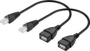 GINTOOYUN 2 Pcs USB 2.0 Female to RJ45 8P4C Ethernet Male Extension Cable for Router, ADSL Modem, Camera etc (11.81 Inch)