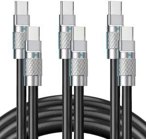 Statik TsumoCharge USB C to USB C 100W Fast Charging Cable - Heavy-Duty Unbreakable Silicone, Supports Data Transfer, 6FT/2M, Black 3-Pack