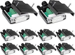 10PCS DB15 Solderless Connector, RS232 D-SUB Serial to 15-pin Port 16mm Thinner Terminal Female Adapter Breakout Board with Case Long Bolts Nuts