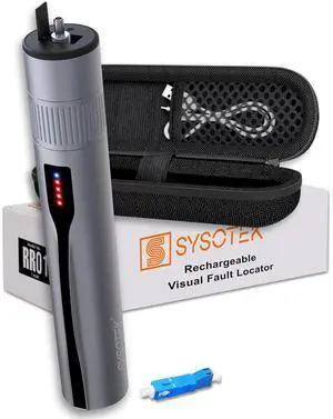 Visual Fault Locator - Rechargeable Red Light VFL Fiber Optic Tool kit - Retractable Head fits SC FC ST - Optical Laser Light Pen - Network Cable Tester - with Protective Case and LC Adapter