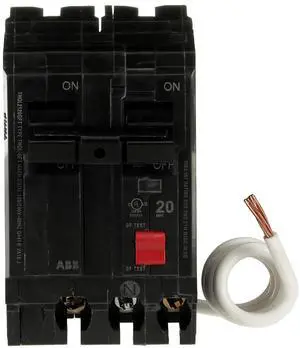 ABB Q-Line® THQL2120GFT 20A Double Pole Circuit Breaker 20 Amp Double Pole Ground Fault Breaker with Self-Test 120/240 VAC 2-Pole GFCI Breaker Ground Fault Circuit Interrupter
