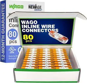WAGO 221-2401 80pc Inline Compact Splicing Wire Connectors | Includes 80pc 221-2401 (2 Conductor) | WAGO Wire Connectors | 221 Straight Inline Splice | Straight Electrical Lever Nuts | (2-Port)