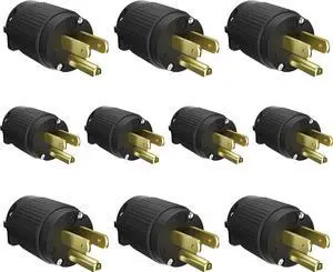 Journeyman-Pro 515PV 15 Amp 120-125 Volt, NEMA 5-15P, 2Pole 3Wire, Straight Blade, Male Plug Replacement Extension Cord Outlet, Commercial Grade Black (Black 10-Pack)