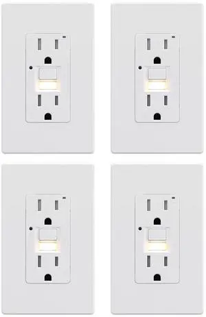 AIDA GFCI Outlet 15 Amp with Nightlight Plate,Self-Test Electrical Outlet, Tamper-Resistant Receptacle Ground Fault Circuit Interrupters, Wall Plate Included, UL Listed (4 Pack, Matte White)