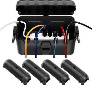 [5 Pieces] RESTMO IP54 Extra Large Outdoor Waterproof Box w/ 6 Cable Seal Entry, Weatherproof Extension Cord Safety Cover, Protect Power Strip, Timer Outlet Plug, Christmas Decoration, Black