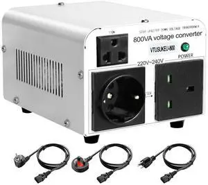 Yinleader 800w Voltage Converter Transformer Step Up 110/120V to 220/240V or Step Down 220/240V to 110/120V w/US/EU/UK Power Cord International Travel Adapter