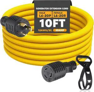 10ft L6-20 Generator Extension Cord Compatible with NEMA L6-20P Male Plug to L6-20R Female Receptacle 3 Prong 20 Amp Locking Power Cord, STW 12 AWG/3C,250 Volt 5000 Watts, ETL Listed