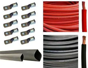 6 Gauge 6 AWG 15 Feet Red + 15 Feet Black Welding Battery Pure Copper Flexible Cable + 10pcs of 3/8" Tinned Copper Cable Lug Terminal Connectors + 3 Feet Black Heat Shrink Tubing