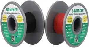 BINNEKER 30 Gauge Silicone Wire Spool 200 feet Ultra Flexible High Temp 200 deg C 600V 30 AWG Silicone Wire 11 Strands of Tinned Copper Wire 100 ft Black and 100 ft Red Stranded Wire for Model