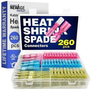 New Age America® 260pcs KableSeal Heat Shrink Spade Connector Kit | AWG 22-10 | Tinned Copper & Marine Grade | Color Coded | Insulated | Male and Female Quick Disconnect Terminals | UL Certified