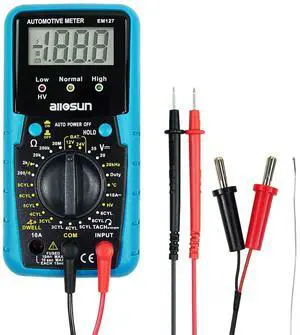 allsun Automotive Multimeter DMM DC Volt Ohm Temp Frequency Diode & Continuity Tester Automotive Diagnosis Tester Test RPM Dwell Angle