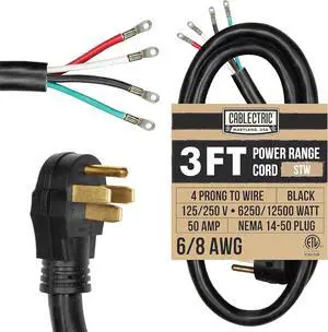 4 Prong Range Power Cord, 3 Foot Heavy Duty 6/8 AWG 50 Amp Cable, NEMA 14-50 Plug, Stove Extension Cord to 4 Wire, 4 Plug Dryer Replacement Cord