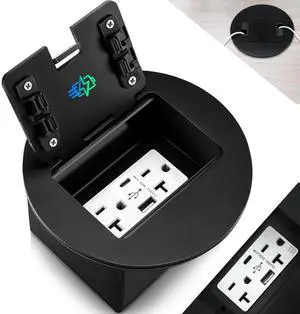 Kanayu 1 Pcs Recessed Floor Outlet with Quick Charge 4.8A USB A+C, 20A Duplex TR Receptacle, Adjustable Waterproof Steel Box, 3.2"x4" 1-Gang, Electrical Outlet Kit for Home Renovation, ETL Listed