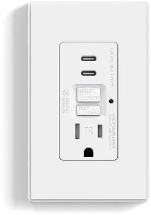 ELEGRP GFCI Outlet with USB Ports, 15 Amp Self-Test GFCI Combination with Dual USB C Ports, 24W Max Total Output, Tamper Resistant GFCI USB Outlet with Wall Plate, UL Listed, Matte White, 1 Pack