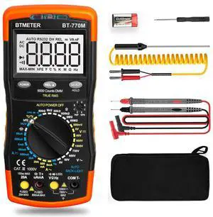 Digital Multimeter TRMS 6000 Count, BTMETER BT-770M Auto/Manual Ranging DMM Electrical Meter Tester for AC/DC Amp, AC/DC Volt, Ohm Capacitance Frequency Continuity Temperature NCV, Auto Backlight