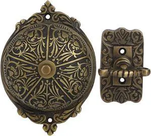 A29 Vintage Doorbell Victorian Twist Antique Doorbell Chime Kit with Manual Hand Turn Chime Solid Brass Antique Finish Wireless Mechanical Door Bell, DIY Installation, Decorative Classic Design