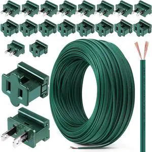 Aodaer 394FT SPT-1 Hookup Christmas Electric Wire 18AWG With 20 Vampire Plugs (10 Male & 10 Female) Tinned Copper Flexible Bulk Lamp Cord for Outdoor Landscape Lighting