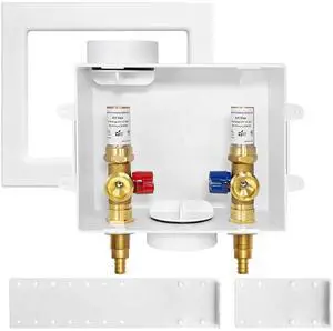 HeSun Washing Machine Outlet Box, 1/2 Inch Crimp Pex Inlet x 3/4 Inch MHT Outlet, Pex Washer Laundry Box with Center Drain,with Copper Water Hammer Arrestor