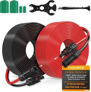 10AWG PV Wire Solar Panel Extension Cable 2 * 30FT 6mm Tinned Copper with IP68 Waterproof Connector for Solar Photovoltaic Boat Marine RV Outdoor -10Gauge (Black & Red) UV Resistant