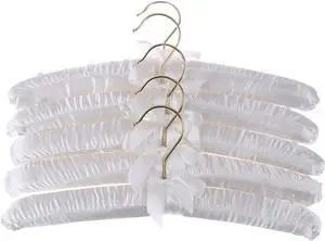 5pcs 38cm Beige/White Satin Padded Top Hanger Clothes Coat Hanger Gold Hooks (Color : OneColor, Size : 38cm) (Beige 38cm)
