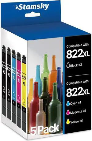 822XL Ink Cartridges Combo Pack Remanufactured Replacement for Epson 822XL Ink Cartridges for Epson 822XL 822 XL T822XL for Pro WF-3820 WF-3823 WF-4820 WF-4830 Printer5 Pack
