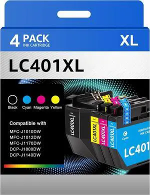 LC401XL LC401 Ink Cartridges Compatible for Brother Ink Cartridges LC401 XL to use with Brother MFC-J1010DW MFC-J1012DW MFC-J1170DW Printer Ink (Black Cyan Magenta Yellow, 4 Pack)