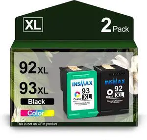 92XL 93XL Ink Cartridges Replacement for HP 92 and 93 92xl 93xl Combo Pack High Yield for Photosmart C3150 C3180 7850 Deskjet 5440 5420 PSC 2525 1510 Printer (1 Black, 1 Tri-Color)