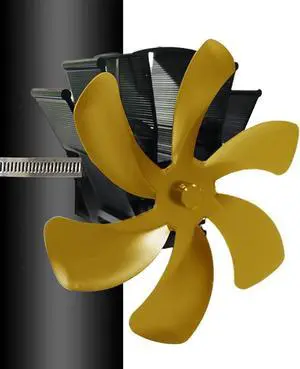Wall-Mounted Fireplace Fan with 6 Blades, Upgrade Pipe Fan Wood/Log Burner Fans, Silent Operation Efficient Heat Stove Fans Distribution, for/Log Burning Stoves/Gas/Pellet/Wood,Bronze (Black) (Gold)